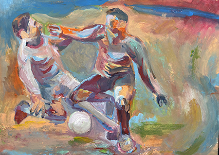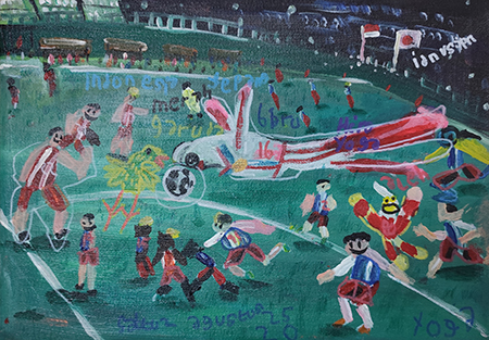 審査にあたった櫛野さんは、「すごく『描きたい』という想いが伝わってくるような絵画」であることから、本作品を選出。インドネシアと日本によるサッカーの試合とともに、インドネシアの国鳥「ガルーダ」が大きく描かれた作品です。