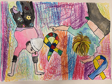 小学生以下部門の受賞作品を制作したHiiiiiさんは、自身のブレイクダンスの様子を描いています。「止まっているはずなのに、動きを感じる。色使いもすごくポップ。絵を見ただけでわくわくしました」と、プレゼンターの安永さんは話します。