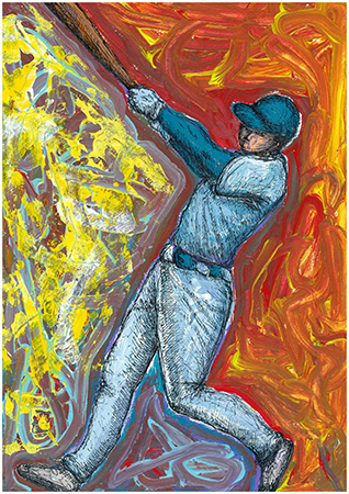 「パラリンアートは、僕の人生の出発点です。収入もない中で良い画材も手に入らず、描写の限界を感じることもありました。そんな負けそうになった瞬間をこの絵に託しました。次の展開は、本人ですらわからないものです。
