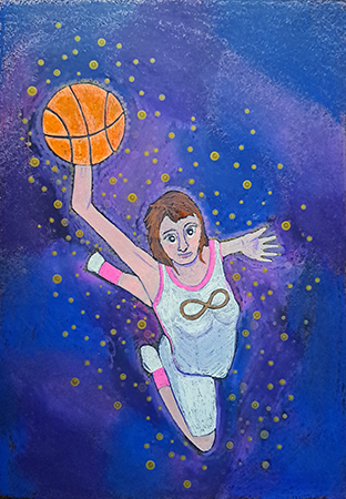 日葵「前に、体験みたいなものをやったんです。それをもとにiPadを使って描いた。(参考画像はあるけれど)義足をつけたり、雲を描いたり、いろいろ変えました。ゼッケン番号も、本当は1番じゃない。腕の上げ方も」